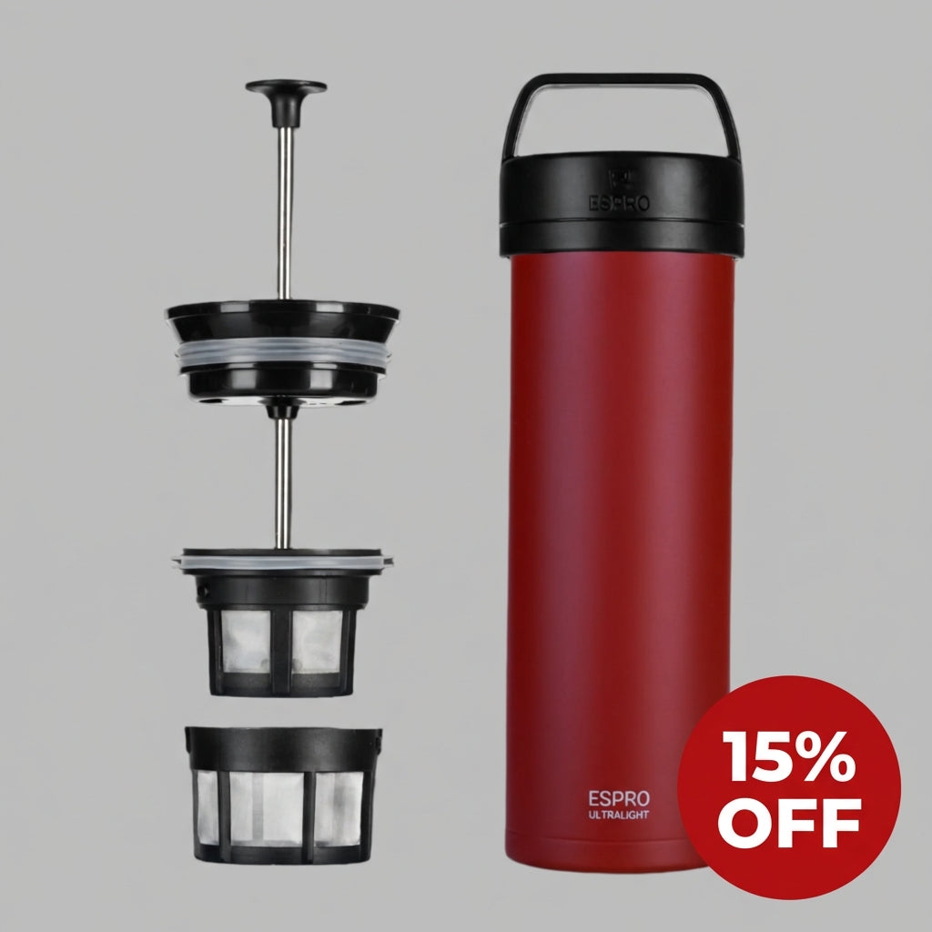 Our double micro-filters are made of durable stainless steel and are 9 and 12-times finer than other French press filters. This creates a small air pocket between the two baskets to make the plunging process easier and more efficient.