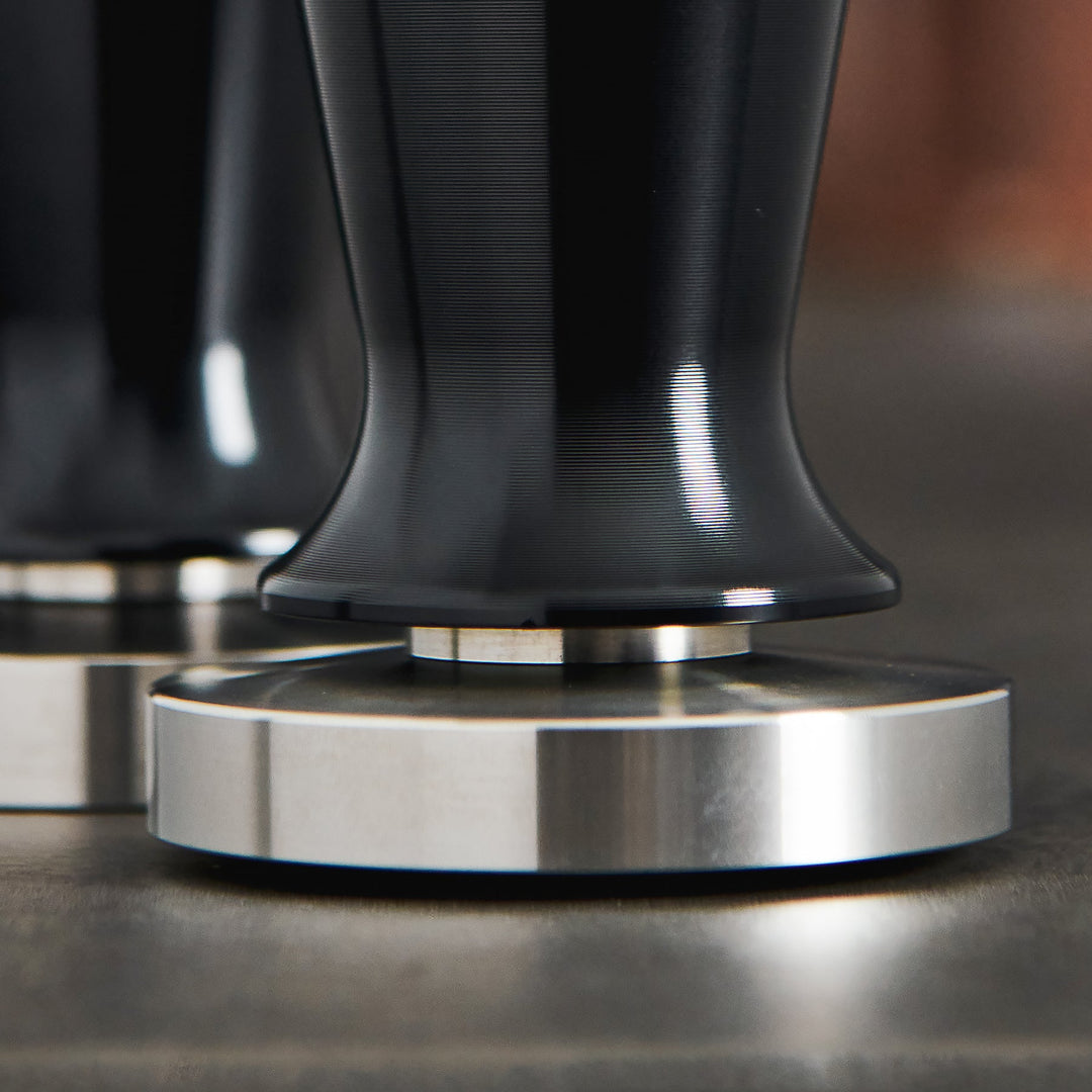 We couldn’t decide on just one tamper shape, so we’ve brought you the best of both worlds: flat and convex tampers! The flat tamper spreads and packs grounds evenly while the convex tamper pushes grounds down and out to create a tight with the edge of the portafilter. The result, fuller-bodied brews and slow, even extraction.