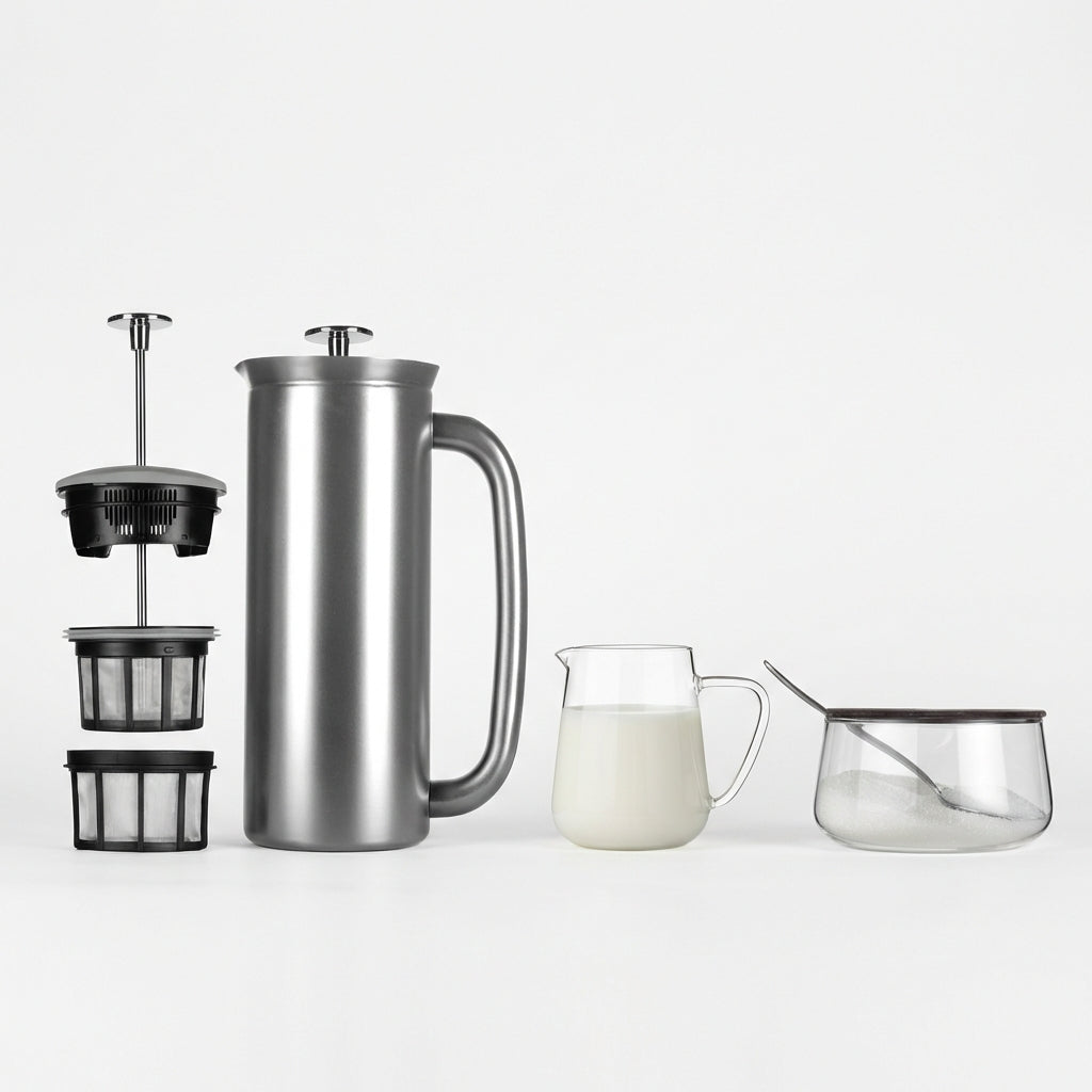 This bundle pairs the engineering excellence of the grit-free ESPRO P7 French Press with the refined simplicity of the VIVA Classic Milk and Sugar Set. It's the ideal collection for the coffee lover who demands the best flavor and appreciates a beautiful presentation at the breakfast or dinner table.