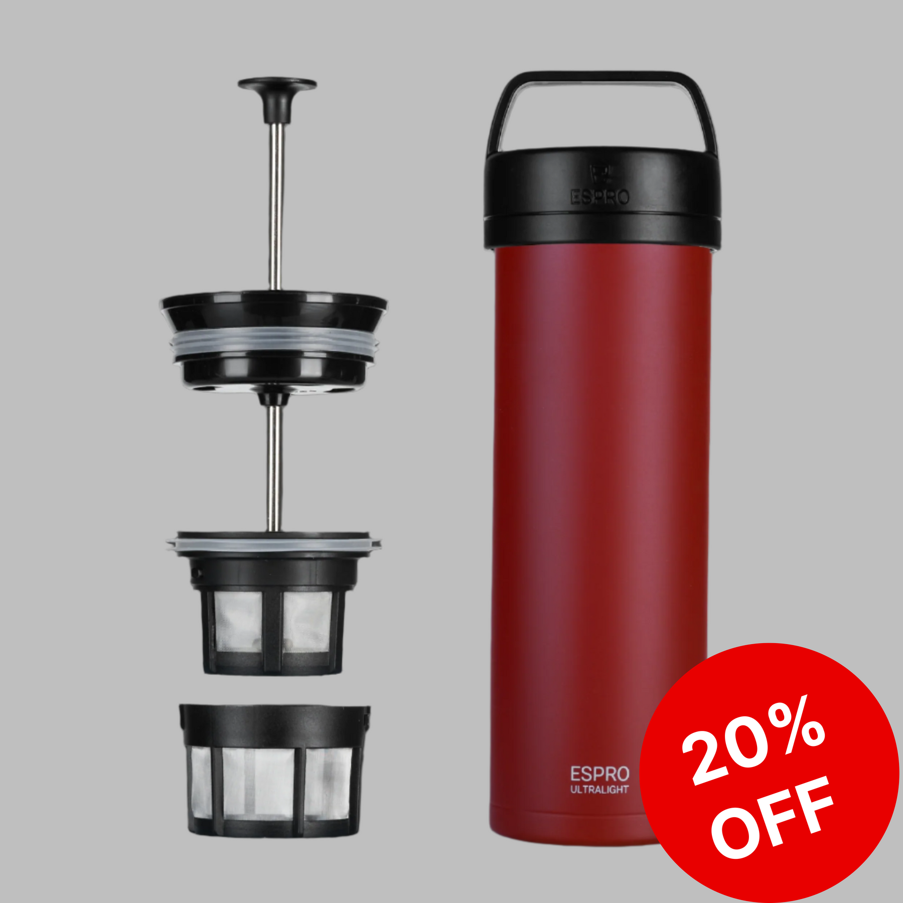 Our durable, looped handle cover is truly the cherry on top of our Ultralight P0 Travel Press. Its ergonomic design and premium materials allow you to securely clip your Ultralight P0 to your bag or backpack and provides an easy grip for on-the-go caffeination so you never have to reach far for the perfect cup of coffee.